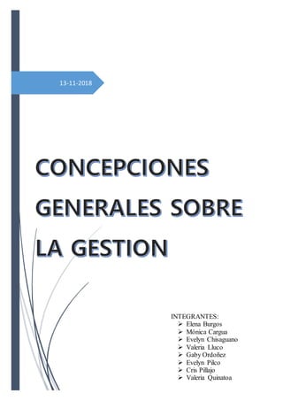 Este documento presenta información sobre la gestión educativa y administrativa. Define la gestión como la acción y efecto de realizar tareas con cuidado, esfuerzo y eficacia para alcanzar una finalidad. Explica que la gestión educativa es un proceso orientado al fortalecimiento de los proyectos educativos de las instituciones para mejorar los procesos pedagógicos y responder a las necesidades educativas locales. También describe la gestión administrativa como la acción de gestionar y administrar una actividad profesional para establecer objetivos, organ