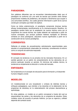 Este documento presenta información sobre las corrientes pedagógicas. Explica conceptos clave como paradigma, corrientes, enfoques y modelos pedagógicos. También define teorías epistemológicas, sociológicas y psicológicas. El documento fue escrito por Ángel Danilo Torres para un módulo sobre corrientes pedagógicas dictado en la Universidad Nacional de Loja, Ecuador.