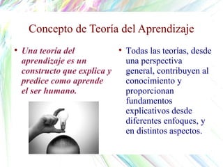 Este documento presenta una introducción a las teorías del aprendizaje. Explica que una teoría del aprendizaje describe cómo aprende el ser humano y que existen varios factores que influyen en el aprendizaje como la estructura biológica, la inteligencia, el contexto social y los componentes emocionales. Plantea preguntas sobre si ciertas habilidades como caminar o leer surgen independientemente de la escuela o están influenciadas por un aprendizaje sistemático.