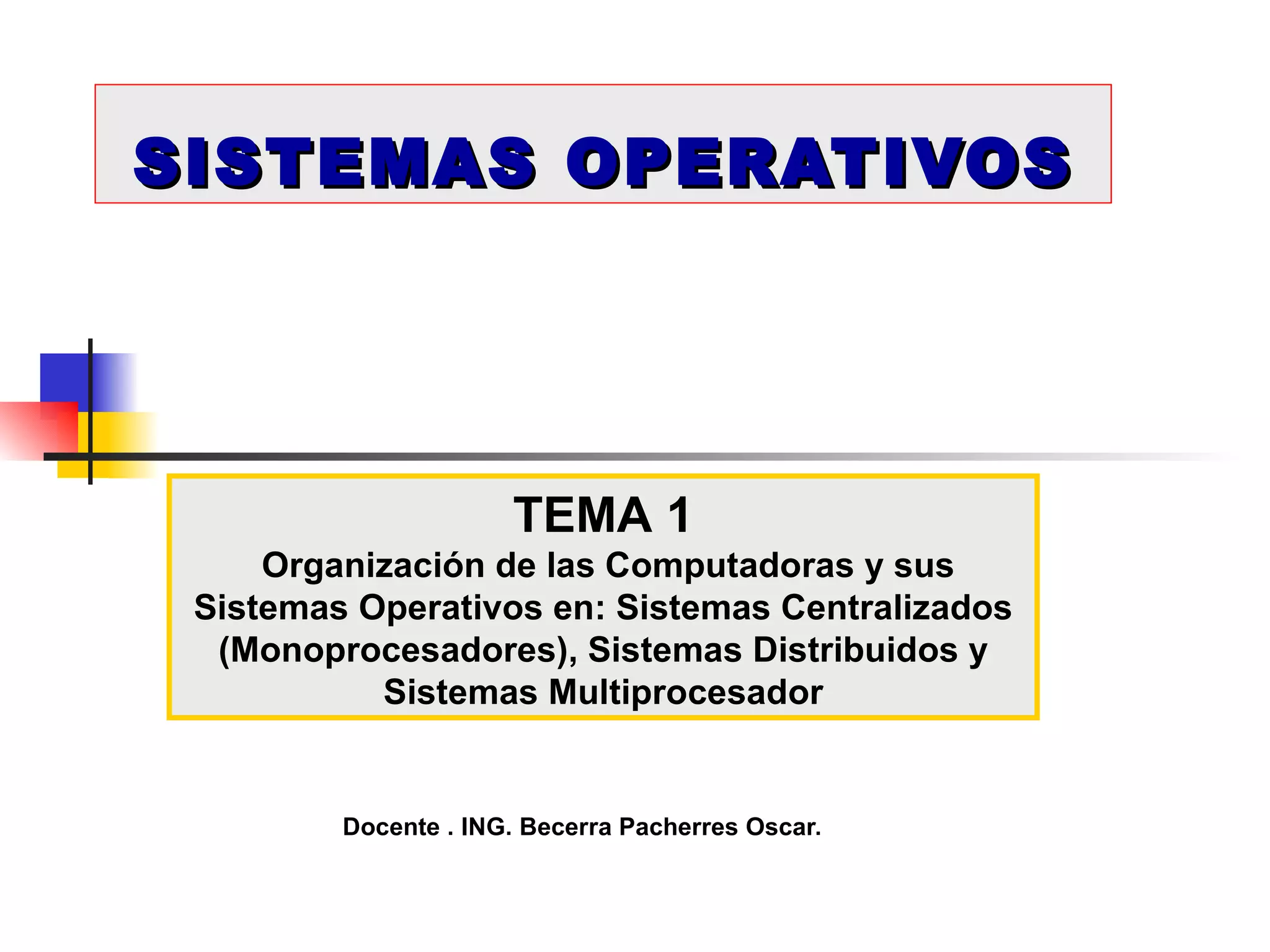 Este documento describe la evolución de los sistemas operativos desde los primeros sistemas por lotes hasta los sistemas operativos modernos para computadoras personales. Inicialmente, los sistemas operativos controlaban la ejecución de trabajos por lotes y residían completamente en la memoria principal. Posteriormente surgieron los sistemas multiprogramados que permitían la ejecución concurrente de múltiples trabajos aprovechando el tiempo de espera de E/S. Finalmente, los sistemas de tiempo compartido proporcionaron acceso interactivo a comput