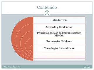 El documento presenta conceptos básicos de sistemas de comunicaciones, incluyendo los elementos de un sistema de comunicación, tipos de señales, ventajas de la transmisión digital, conversión analógica a digital, codificación de voz, canales inalámbricos, modelos de propagación y más. Explica cómo los sistemas de comunicación buscan entregar la mayor cantidad de información posible en el menor tiempo y con menos errores posibles.