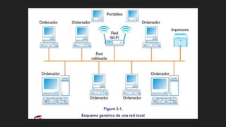 Este documento proporciona una introducción a los conceptos básicos de las redes de computadoras. Explica qué es una red y una red de computadoras, y describe los esquemas genéricos, protocolos, tipos (por alcance, medio de conexión, relación funcional, dirección de datos y topología), y el modelo OSI de 7 capas para la transmisión de información entre dispositivos de red. El documento fue diseñado y editado por 4 estudiantes como parte de un curso de computación en el año 2016.