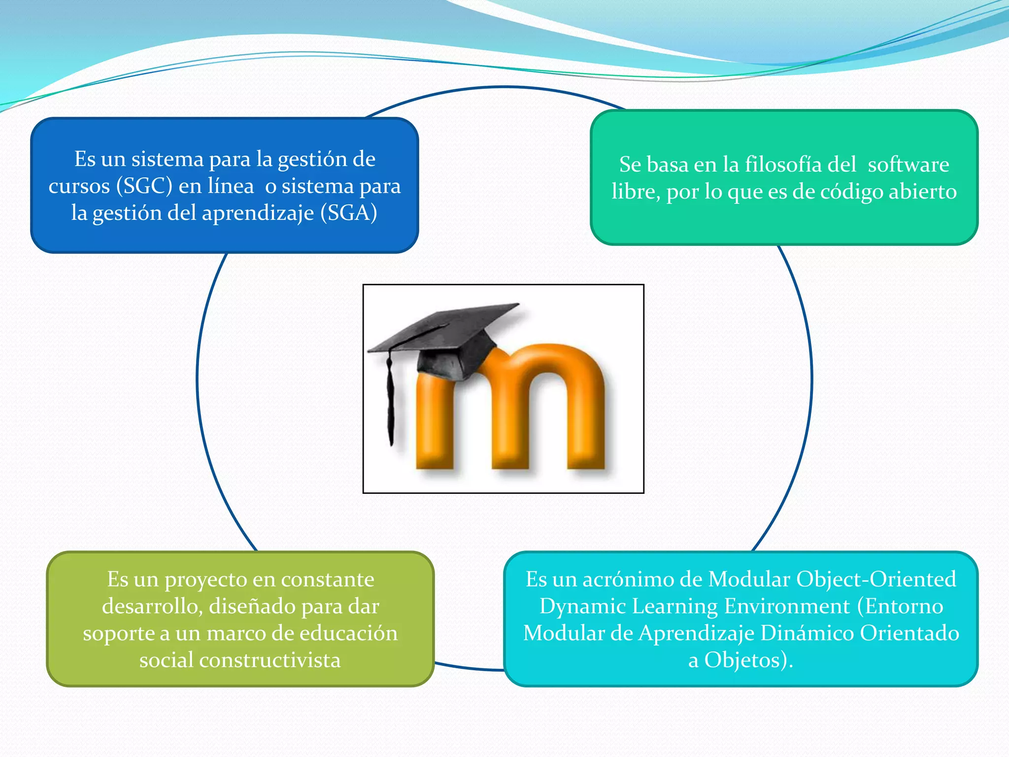 Este documento describe Moodle, un sistema de gestión del aprendizaje de código abierto. Moodle se basa en la filosofía del software libre y es un entorno modular de aprendizaje dinámico orientado a objetos. Se utiliza principalmente para la educación a distancia y el apoyo a la docencia presencial, y proporciona recursos y actividades para que los estudiantes y profesores interactúen.