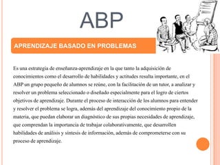 Este documento presenta resúmenes breves de varios conceptos clave relacionados con la organización y gestión de un centro de aprendizaje. Explica el aprendizaje basado en problemas (ABP), el autoaprendizaje, el conectivismo y el constructivismo social. El ABP involucra a los estudiantes en resolver problemas reales en grupos pequeños con la guía de un tutor. El autoaprendizaje se centra en la responsabilidad del estudiante para identificar sus propias necesidades y metas de aprendizaje. El conectivismo