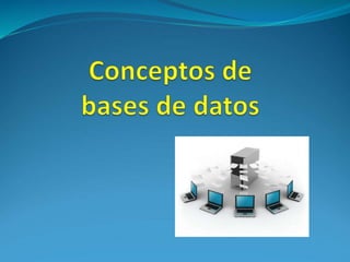 El documento describe conceptos básicos sobre bases de datos, incluyendo qué es una base de datos, sus componentes principales (tablas, consultas, formularios e informes), y cómo se usan para almacenar y recuperar información de manera organizada para apoyar la toma de decisiones. Explica que una base de datos relacional vincula tablas de datos para acceder a la información de múltiples maneras y obtener datos relacionados de diferentes tablas. También incluye ejemplos de diseño lógico de bases de datos y estructura b