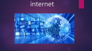 El internet es una red descentralizada de redes interconectadas que utilizan protocolos TCP/IP para formar una red lógica global. Surgió en 1969 con la conexión entre tres universidades en California. La World Wide Web es un desarrollo posterior (1990) que permite la consulta remota de archivos de hipertexto utilizando internet. Existen muchos otros servicios y protocolos en internet además de la Web, como el correo electrónico, la transmisión de archivos y conversaciones en línea.