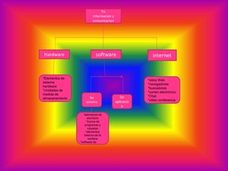Este documento resume conceptos clave de tecnologías de información y comunicación como hardware, software, internet, navegadores, buscadores, blogs, redes sociales, correo electrónico y mensajería instantánea. Explica brevemente elementos como hardware y software de sistema y de aplicación, y servicios en internet como buscadores, redes sociales y correo electrónico.
