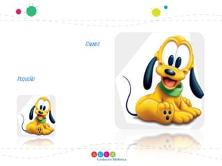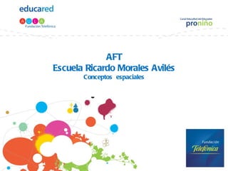 El documento presenta conceptos espaciales básicos como grande/pequeño, lejos/cerca, adentro/afuera, arriba/abajo, mucho/poco, gordo/delgado. Incluye una bibliografía de dos fuentes: el sitio web CanaldelEducadorProniño y Google Images.