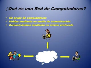 Internet es un conjunto de redes de computadoras interconectadas que permiten realizar actividades como videoconferencias, ver imágenes por satélite, buscar información y descargar películas o música. Para acceder a Internet se necesita una computadora, tarjeta de red, modem, proveedor de Internet y programa de navegación, y opciones de conexión incluyen ADSL y conexiones inalámbricas. El correo electrónico y las páginas web son elementos importantes de Internet que permiten comunicación y publicación de documentos respectivamente.