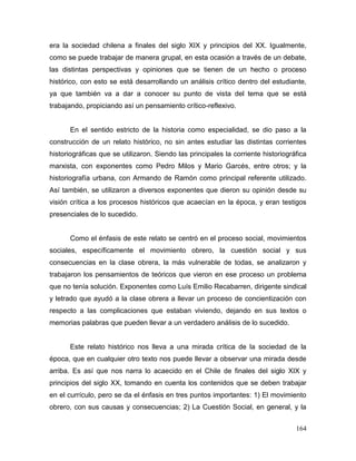 Este documento resume los puntos principales de la investigación realizada. Señala que se utilizaron los lineamientos del currículo de historia chileno de 2009, incluyendo los contenidos mínimos obligatorios y los objetivos. Explica que el material pedagógico se construyó usando metodologías como análisis de textos e imágenes, trabajos grupales y líneas de tiempo. Finalmente, el resumen indica que este material estará disponible en línea para que los profesores lo utilicen en la enseñanza de la historia.