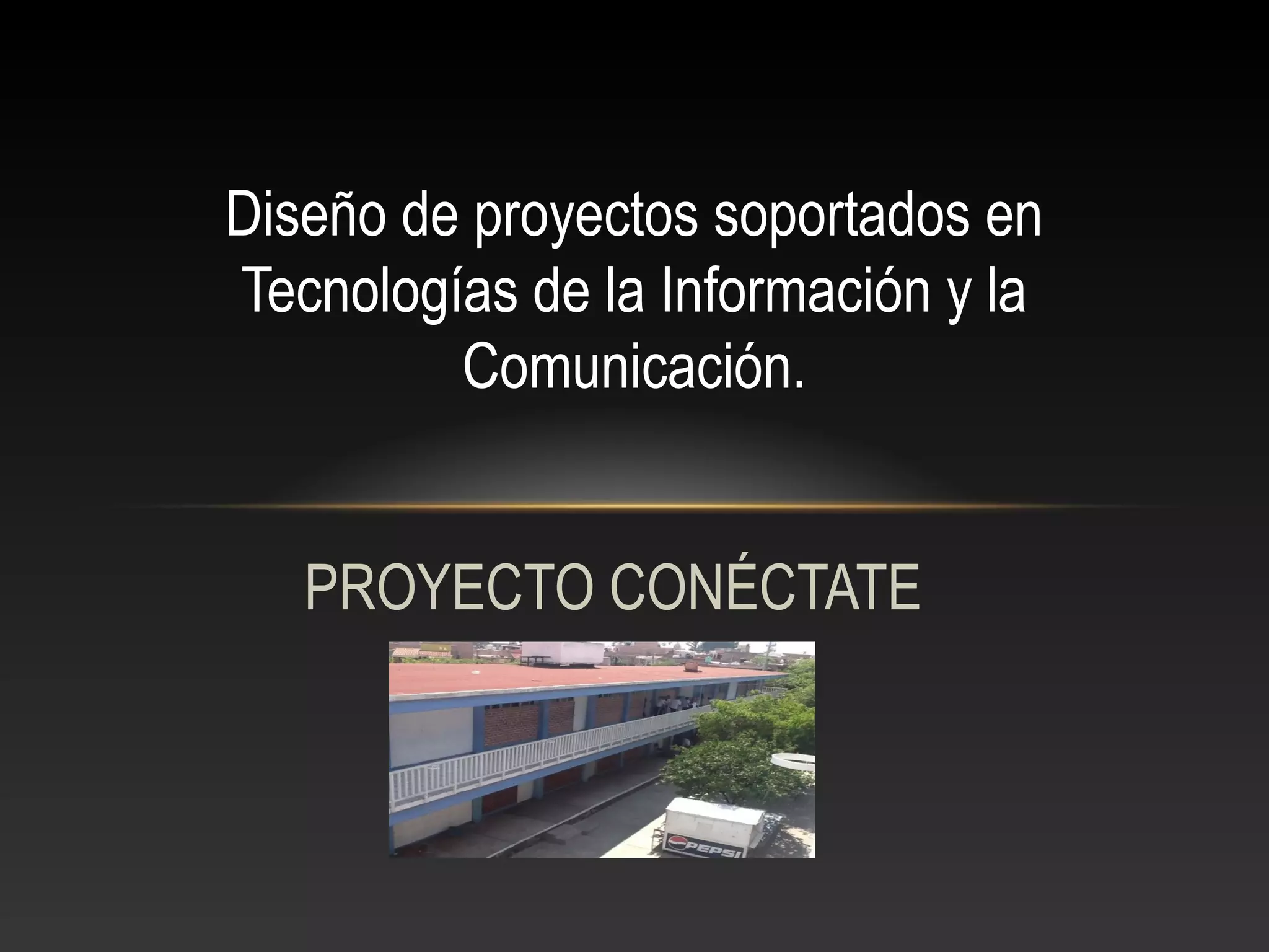 El proyecto "CONÉCTATE" busca optimizar el uso de los recursos tecnológicos en una secundaria técnica de Jalisco. Se capacitará a docentes y alumnos en el uso de herramientas como un blog, biblioteca virtual, wiki y webquest. El blog ofrecerá estrategias didácticas a docentes, mientras que los alumnos podrán acceder a computadoras e investigaciones en línea. El objetivo es enriquecer el aprendizaje a través de las TIC.