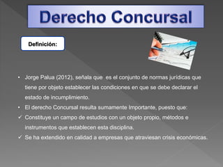 Este documento describe los principales aspectos del proceso de atraso en el derecho concursal venezolano. El proceso de atraso permite a un comerciante solvente pero que atraviesa dificultades financieras temporales suspender el pago de sus obligaciones. El comerciante debe presentar documentación ante un tribunal para solicitar el estado de atraso. De ser admitida, la solicitud da lugar a una liquidación amigable de los negocios del comerciante bajo supervisión judicial durante un plazo máximo de 12 meses.