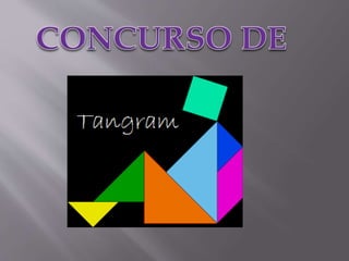 El tangram es un juego chino antiguo que estimula la creatividad, consiste en 7 piezas geométricas que se usan para formar diferentes figuras siguiendo las reglas de que todas las piezas deben usarse y estar en el mismo plano sin superponerse.