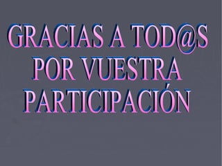 El documento agradece las contribuciones de varias personas a un proyecto, incluyendo fotografías de Ana Zarza, Asel Raquel López y Fco Javier Chacón de 4o A, un video de Mari Carmen Domínguez, y montaje de Toñi Sánchez con ayuda de Robert Vélez de 3o A.