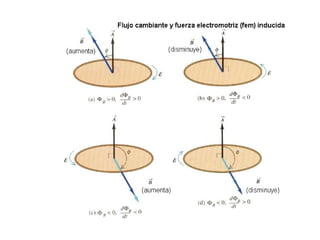 El documento trata sobre la relación entre la capacitancia y la carga almacenada en un condensador, destacando que la capacitancia se mide en faradios. También aborda la inducción electromagnética, explicando cómo una corriente eléctrica genera un campo magnético y cómo este puede inducir una fuerza electromotriz en un circuito. Finalmente, se mencionan aplicaciones prácticas como los generadores, que convierten energía mecánica en corriente eléctrica mediante el uso de espiras conductoras en campos magnéticos.