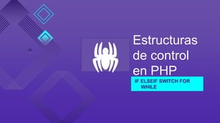 El documento enseña sobre estructuras de control en PHP, incluyendo condicionales como if, elseif y switch, así como bucles for y while. Se busca familiarizar a los estudiantes con estas estructuras para controlar el flujo de ejecución en programas, y se presentan ejercicios prácticos para consolidar el aprendizaje. Además, se incluyen ejemplos sobre el uso de estas estructuras en situaciones cotidianas, como cálculos de descuentos y clasificación de IMC.