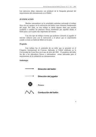 El documento explora el condicionamiento físico con balón en el fútbol, destacando su importancia en los entrenamientos modernos y la motivación que proporciona a los jugadores. Se presentan varias situaciones de entrenamiento que integran el balón como elemento central para mejorar la resistencia, velocidad y habilidades técnicas. El enfoque actual se aleja de las prácticas monótonas y busca maximizar el rendimiento de los jugadores a través de métodos variados y motivadores.