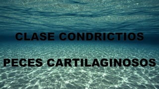 Los condrictios son peces cartilaginosos que surgieron durante el período Devónico. Se caracterizan por tener el esqueleto formado por cartílago en lugar de hueso, estar aplanados en el eje dorso-ventral, y tener la piel cubierta de dentículos dérmicos. Carecen de vejiga natatoria y dependen principalmente del olfato y la línea lateral para detectar presas. La mayoría son depredadores, aunque algunas especies se alimentan de plancton o algas.