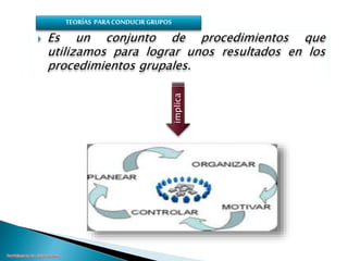 Este documento describe diferentes técnicas y métodos para trabajar en equipo de manera efectiva, incluyendo teorías, técnicas de formación de grupos, dinámicas de grupo y el rol del líder. Explica métodos como la agrupación libre, el sociograma, el método Oxford y el método collage, así como la representación de roles y la dramatización. Además, destaca la importancia de considerar los objetivos, la fase del grupo y la sensibilidad del líder al seleccionar la técnica más adecuada.