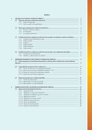 Los conductores eléctricos son esenciales para transmitir la energía eléctrica desde las centrales generadoras hasta los centros de consumo. Están compuestos principalmente por un alma conductora de cobre, un aislamiento para evitar contactos eléctricos no deseados, y cubiertas protectoras. Existen diversos tipos de conductores clasificados según su número de alambres, aislamiento, voltaje y condiciones de uso, como cables para distribución, armados, portátiles y submarinos.