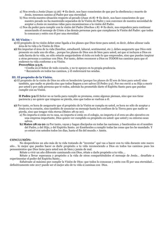 1) La visión de Dios es que toda persona conozca su amor y disfrute de su presencia por la eternidad. Jesús vivió obedientemente alineado con esta visión de Dios para traer salvación a la humanidad.