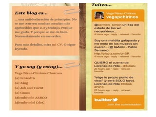 El documento explora el uso de redes y entornos de aprendizaje personal para la colaboración profesional y el intercambio de recursos entre docentes. Se proponen acciones prácticas, como crear perfiles en redes sociales especializadas, blogs y directorios de recursos, para fomentar la conexión entre educadores y mejorar su desarrollo profesional. También se discute la importancia de la gestión del conocimiento en la educación y la creación de comunidades de práctica.