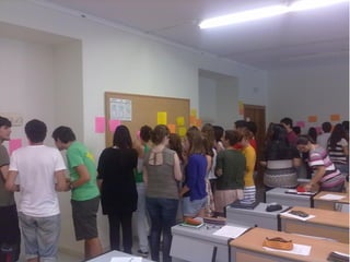 El documento describe los principios del conectivismo y cómo pueden aplicarse en el aula para mejorar el aprendizaje. El conectivismo enfatiza la diversidad de opiniones, conectar diferentes fuentes de información, la capacidad de actualizar conocimientos, y el uso de dispositivos no humanos. El documento sugiere formas de implementar estos principios en el aula, como permitir interacción entre estudiantes y darles más libertad y autonomía en el aprendizaje.