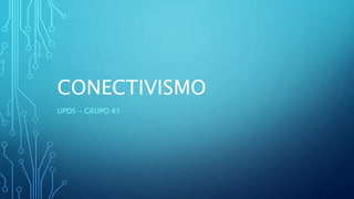 El conectivismo enfatiza el rol social y cultural en el aprendizaje. Se basa en la diversidad de opiniones y en conectar fuentes de información. El conocimiento puede residir fuera de las personas. Promueve la autonomía y la colaboración, aunque requiere capacitación docente y acceso a la tecnología.