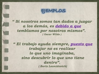 Las dos citas discuten cómo el juicio de otros y el trabajo personal pueden ser beneficiosos. La primera cita de Oscar Wilde sugiere que juzgamos a los demás debido a nuestros propios temores internos. La segunda cita de Boris Leonídovich argumenta que el trabajo ayuda porque permite descubrir nuestras propias capacidades a través de la acción en lugar de solo la imaginación.