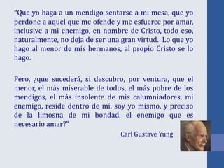 Este documento trata sobre la importancia de educar los sentimientos. En pocas oraciones, argumenta que es necesario aprender a escuchar los mensajes de los sentimientos para lograr la paz interior y la evolución espiritual. También sugiere que cuando se aceptan y comprenden los sentimientos en lugar de juzgarlos, se puede tomar decisiones responsables que conduzcan al bienestar. Finalmente, propone que la doctrina espírita brinda orientación para este proceso de autoconocimiento.