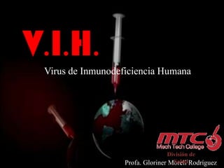 El documento resume la información sobre el Virus de Inmunodeficiencia Humana (VIH) y el Síndrome de Inmunodeficiencia Adquirida (SIDA). Explica que el VIH destruye los linfocitos T, causando el SIDA. Describe las características del virus, como que es un retrovirus ARN que se integra en las células y destruye el sistema inmune. También explica cómo actúa el virus y las vías de transmisión, así como los síntomas, diagnóstico y tratamiento. Resalta la import