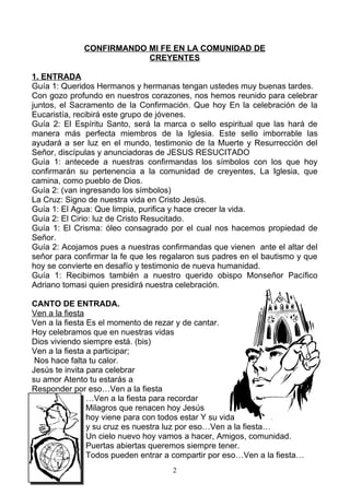 Guía 1: Ahora los padrinos acompañaran a las confirmandas al altar para