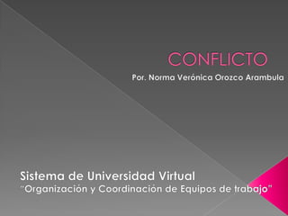 El documento describe el conflicto como una situación de oposición entre dos o más individuos que entran en confrontación o acciones antagonistas. Explica que los conflictos pueden deberse a problemas de comunicación, información, intereses, valores o roles. Señala que los conflictos prolongados pueden generar hostilidad y tensiones, pero también estimular las defensas individuales y la capacidad de afrontar situaciones. Por último, detalla diferentes estrategias para afrontar los conflictos como la asertividad, cooperación, negociación o evasión.