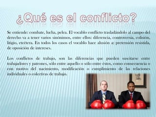 Este documento describe los tipos de conflictos que pueden ocurrir en equipos de trabajo. Explica que hay conflictos funcionales que pueden ser positivos al impulsar cambios, e conflictos disfuncionales que perjudican el rendimiento. También describe cinco estilos para manejar conflictos: evasivo, complaciente, impositivo, negociador y colaborador, siendo este último el más efectivo al buscar satisfacer las necesidades de todas las partes.