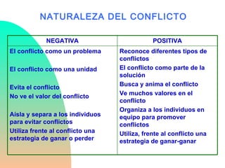 El documento aborda la naturaleza y las dimensiones del conflicto, así como las estrategias de resolución colaborativa y mediación en contextos escolares. Se enfatiza la importancia de la mediación en la prevención de la violencia y en la mejora de las relaciones interpersonales, destacando las condiciones necesarias y los beneficios del proceso. Además, se detallan las fases de implementación de un programa de mediación y las características esenciales que deben tener los mediadores.