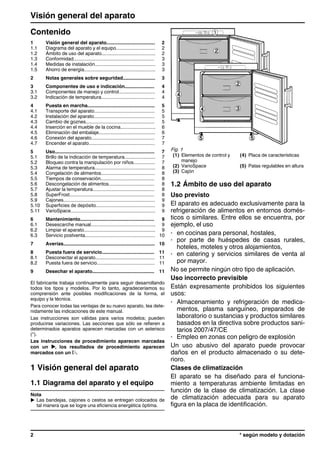Este documento proporciona instrucciones para el uso y mantenimiento de un congelador de sobremesa. Explica los componentes y controles del aparato, cómo transportarlo, instalarlo y conectarlo correctamente, y proporciona consejos sobre su uso seguro y limpieza regular para garantizar un funcionamiento óptimo. También advierte sobre posibles peligros y cómo evitarlos.