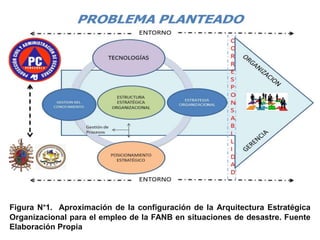 El documento aborda la gerencia emergente en el contexto de la Fuerza Armada Nacional Bolivariana y su papel en la mitigación de desastres, buscando generar un modelo de control en arquitectura estratégica organizacional. Se plantean interrogantes sobre la conceptualización de esta arquitectura, los fundamentos teóricos de la acción gerencial y las etapas involucradas en su implementación. Se concluye con una reflexión sobre la necesidad de un marco metodológico que permita la integración de procesos y procedimientos para la efectividad en la respuesta a desastres.