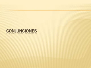 Este documento describe las conjunciones y preposiciones en español. Explica que las conjunciones unen palabras, sintagmas u oraciones, y divide las conjunciones en propias e impropias. También clasifica las conjunciones en coordinantes y subordinantes, y describe los tipos de cada una. Finalmente, define las preposiciones como palabras que relacionan elementos en una oración, e identifica varias preposiciones comunes con sus usos.
