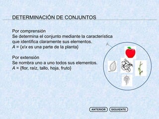 Este documento presenta información sobre conjuntos. Define conjuntos mediante comprensión o extensión. Explica las clases de conjuntos como vacío, unitario o infinito. Luego describe operaciones entre conjuntos como unión, intersección, complemento y diferencia. Finalmente, muestra ejemplos de diagramas de Venn para representar operaciones entre conjuntos.