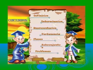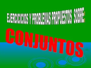 Este documento presenta varios problemas propuestos sobre conjuntos. Los problemas incluyen determinar conjuntos por extensión y comprensión, representar conjuntos mediante diagramas de Venn, identificar subconjuntos y elementos comunes entre conjuntos. En total se proponen 11 problemas que abarcan diferentes conceptos básicos sobre conjuntos.