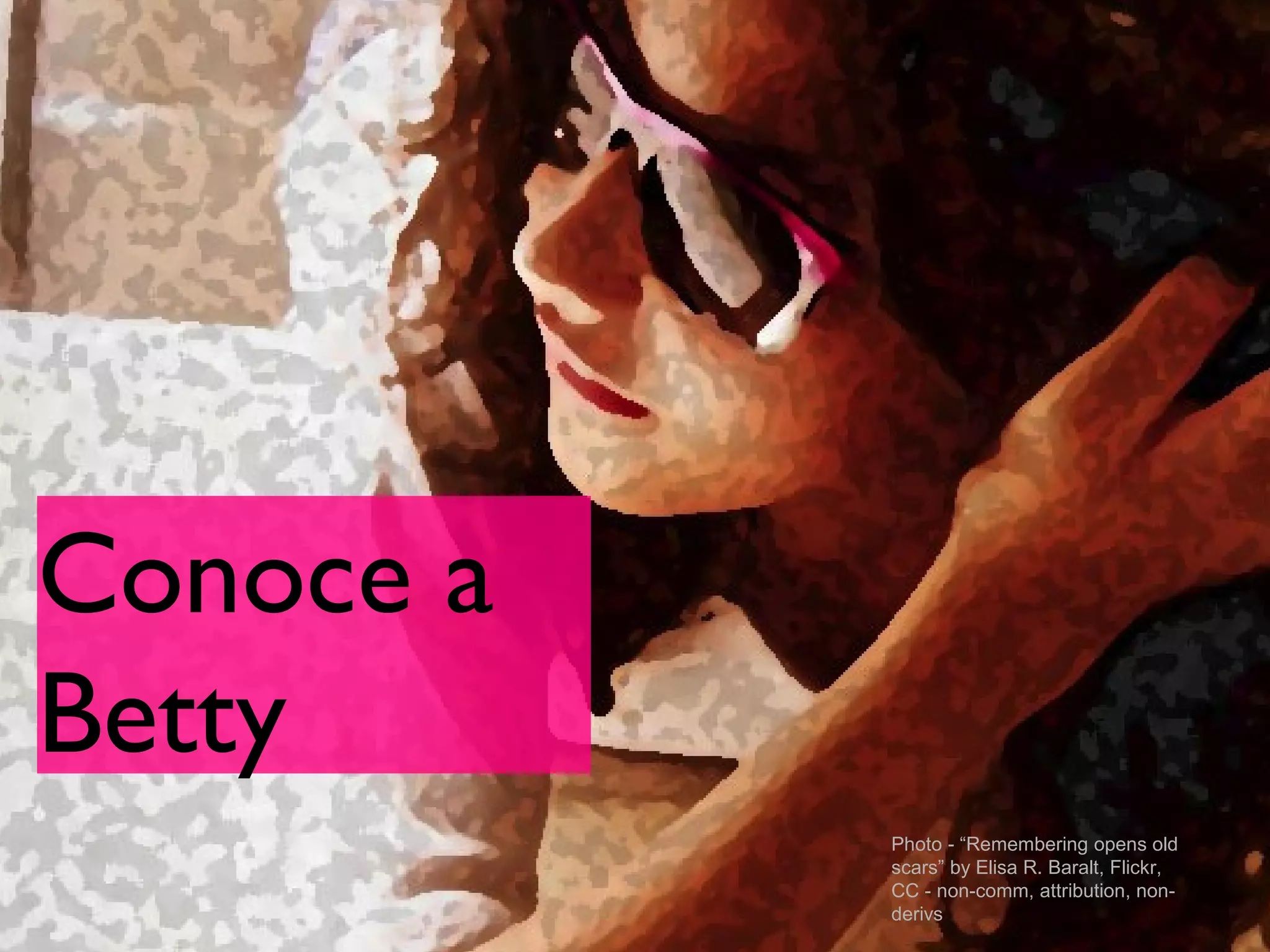 Este documento presenta la historia de Betty, una joven mexicana de 22 años con más de 5,000 amigos en Facebook. Aunque no publica mucho, sus publicaciones sobre política y vida cotidiana son populares. Sin embargo, su perfil público la ha expuesto a invitaciones peligrosas de trabajo y encuentros, posiblemente relacionadas con la trata de personas. El documento advierte que las redes sociales como Facebook son utilizadas frecuentemente por traficantes para contactar a posibles víctimas. Betty ahora usa su plataforma para crear conciencia