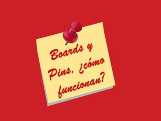 Este documento describe las características y funcionalidades clave de Pinterest. Pinterest es una red social visual para compartir y descubrir ideas en forma de imágenes o vídeos. Los usuarios pueden organizar imágenes y contenidos en tableros temáticos llamados "boards" y seguir los tableros y contenidos de otros usuarios. Pinterest ofrece una interfaz sencilla y atractiva para compartir contenido de manera visual.