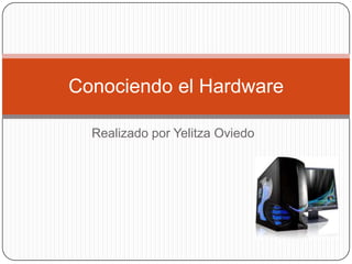 Este documento describe los principales componentes de hardware de una computadora, incluyendo dispositivos de entrada como el teclado y mouse, dispositivos de procesamiento como el procesador, dispositivos de almacenamiento como el disco duro y memoria RAM y ROM, y dispositivos de salida como el monitor e impresora. Explica brevemente la función de cada uno de estos componentes y cómo interactúan entre sí para permitir que la computadora funcione.