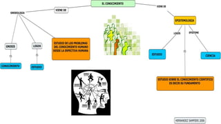 El documento aborda la metodología de la investigación en el contexto del conocimiento. Se presenta en junio de 2016 por el Sr. Gonzalo Rendón en la Escuela de Psicología Educativa y Orientación de la Universidad Central del Ecuador. Se menciona una referencia al trabajo de Sampieri de 2006.