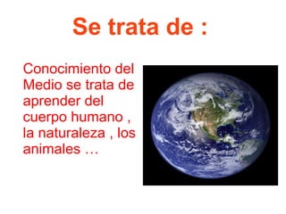 El documento describe los componentes del universo, incluyendo galaxias, estrellas como el Sol, y los objetos que giran alrededor del Sol como los ocho planetas principales y los planetas enanos. Explica que la Tierra es uno de los planetas y tiene dos movimientos: rotación que causa los días y noches, y traslación que causa las estaciones al girar alrededor del Sol.