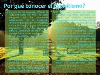 El documento habla sobre lo que es el Espiritismo. Explica que el Espiritismo es una ciencia que trata de la naturaleza, origen y destino de los espíritus y sus relaciones con el mundo corporal. Es a la vez una ciencia de observación y una doctrina filosófica. Responde preguntas fundamentales sobre la vida, la muerte y el destino del alma a través de las comunicaciones con espíritus superiores. Su objetivo principal es lograr el progreso espiritual de la humanidad y transformar a los hombres en seres de bien.