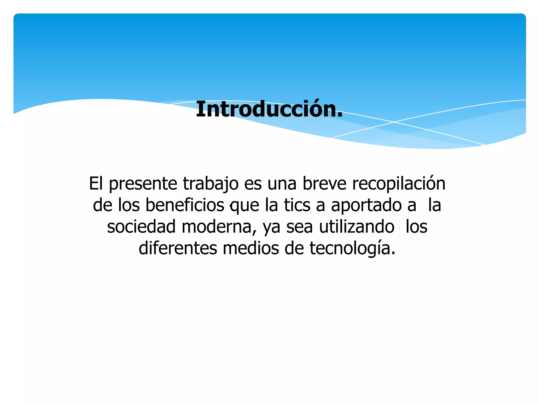 El documento resume los beneficios que las tecnologías de la información y la comunicación (TIC) han aportado a la sociedad moderna, explicando cómo SlideShare permite compartir presentaciones en línea de manera gratuita. Se detallan los pasos para crear una cuenta en SlideShare, subir archivos, incrustar presentaciones en blogs, y salir de la cuenta. También menciona otras páginas web populares para compartir videos, fotos e información.