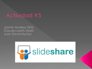 SlideShare es un sitio web donde los usuarios pueden subir presentaciones de diapositivas de forma privada o pública. Los usuarios pueden crear una cuenta llenando un formulario de registro e ingresar a su cuenta para cargar presentaciones y compartirlas. La opción Embed permite insertar enlaces, imágenes y videos en las presentaciones para facilitar la transmisión del mensaje.