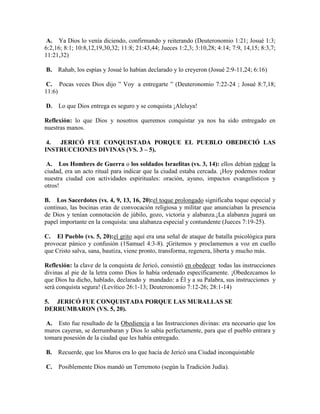 La ciudad de Jericó fue conquistada por el pueblo de Israel a pesar de ser considerada inconquistable debido a sus fuertes murallas y puertas cerradas. Dios entregó la ciudad a Israel y les dio instrucciones específicas para conquistarla, las cuales incluían rodear la ciudad durante siete días mientras los sacerdotes tocaban las bocinas y el pueblo gritaba. Al obedecer estas instrucciones, las murallas de la ciudad se derrumbaron y el pueblo pudo entrar y tomar posesión de Jericó,