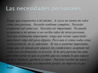 aceptarme tal como soy. Necesito ser importante. No puedo